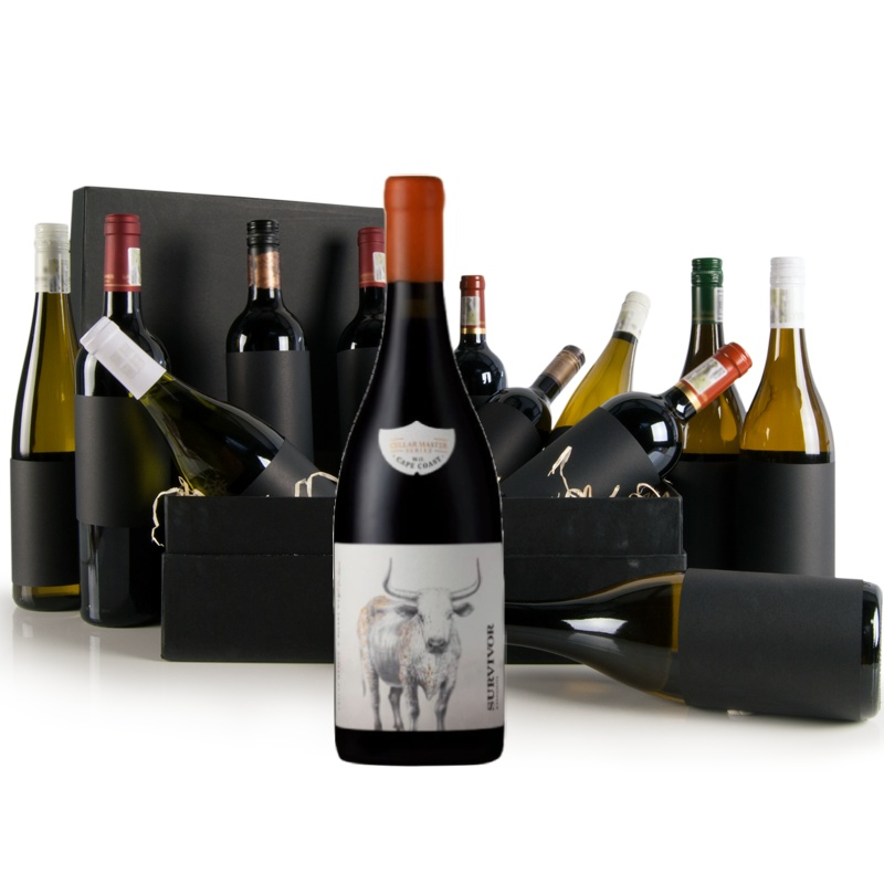 Order the Mystery Pack and you'll stand a 1 in 5 chance of getting a bottle of the Survivor Cellar Master Series Reunion 2022, worth R550.00 in your case.The Survivor Cellar Master Series Reunion 2022 vintage impresses with its lively ruby hue and remarkable depth. Aromas of ripe cherries, fresh strawberries, and a delicate touch of flint lead gracefully into a layered, well-structured palate. Pinot Noir lends spice and elegance, Pinotage adds richness and fruit, while Cinsault ties it all together in a beautifully harmonious, lingering finish.”