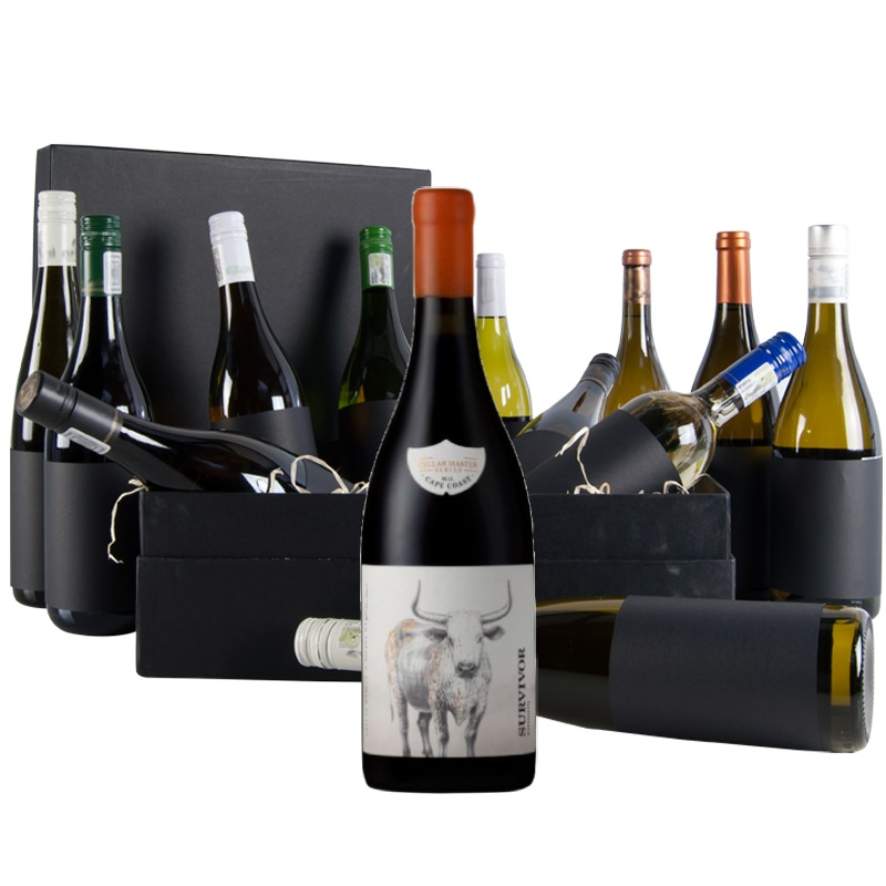 Order the Mystery Pack and you'll stand a 1 in 5 chance of getting a bottle of the Survivor Cellar Master Series Reunion 2022, worth R550.00 in your case.The Survivor Cellar Master Series Reunion 2022 vintage impresses with its lively ruby hue and remarkable depth. Aromas of ripe cherries, fresh strawberries, and a delicate touch of flint lead gracefully into a layered, well-structured palate. Pinot Noir lends spice and elegance, Pinotage adds richness and fruit, while Cinsault ties it all together in a beautifully harmonious, lingering finish.”
